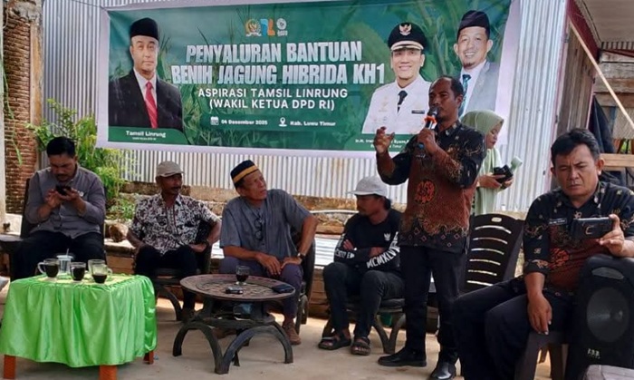 JAEJA.ID — Anggota DPRD Luwu Timur, Rusdi Layong, mengapresiasi langkah Wakil Ketua DPD RI, Tamsil Linrung, yang menyalurkan bantuan benih jagung hibrida kepada petani di Luwu Timur, Kamis (4/12/2025). Ia menyebut bantuan itu sebagai bukti perhatian pemerintah pusat terhadap kebutuhan dasar petani.